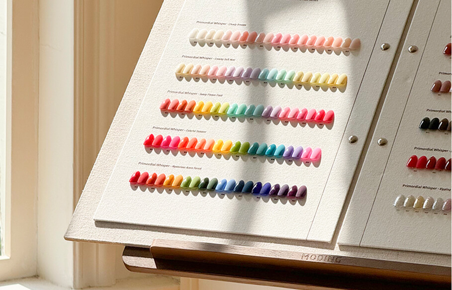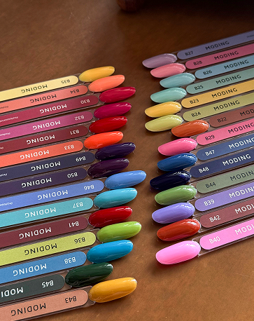 Includes: Nudes, Macarons, Rainbow shades, Neon tones, Muted colors (Moriandy), Reds, Browns, Platinum, and Glitter shades.