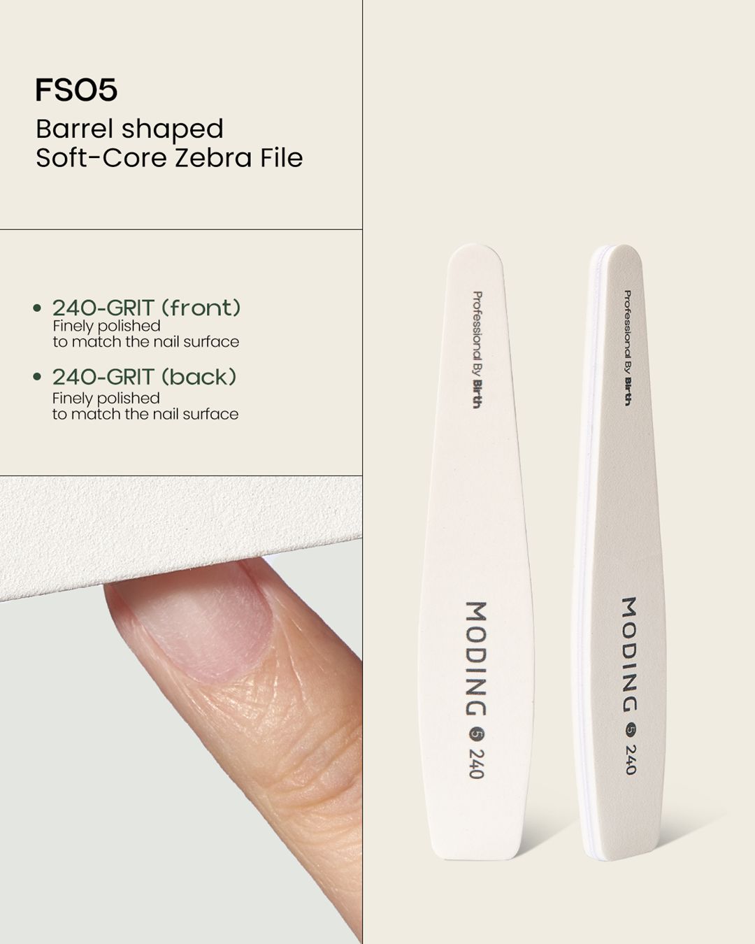 240-grit (Dual-sided): Contours to the nail for ultra-fine smoothing and a pre-polish finish.