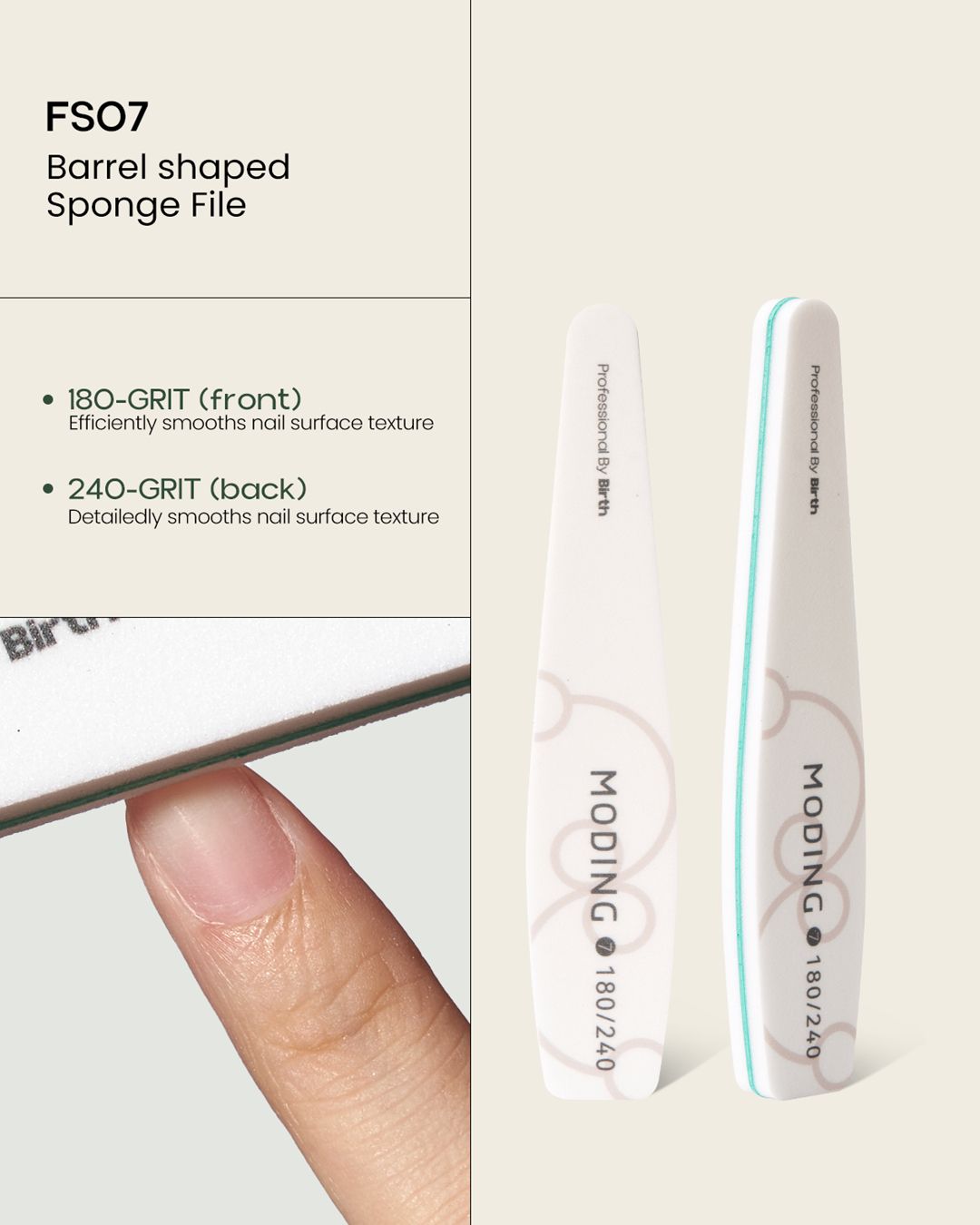 180-grit (Front): For efficient leveling of the nail surface and texture.